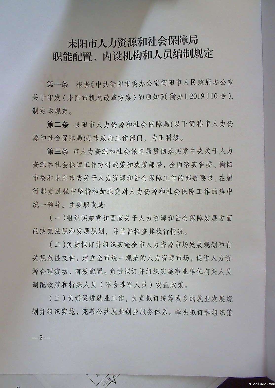 耒阳市人力资源和社会保障局职能配置、内设机构和人员编制规定