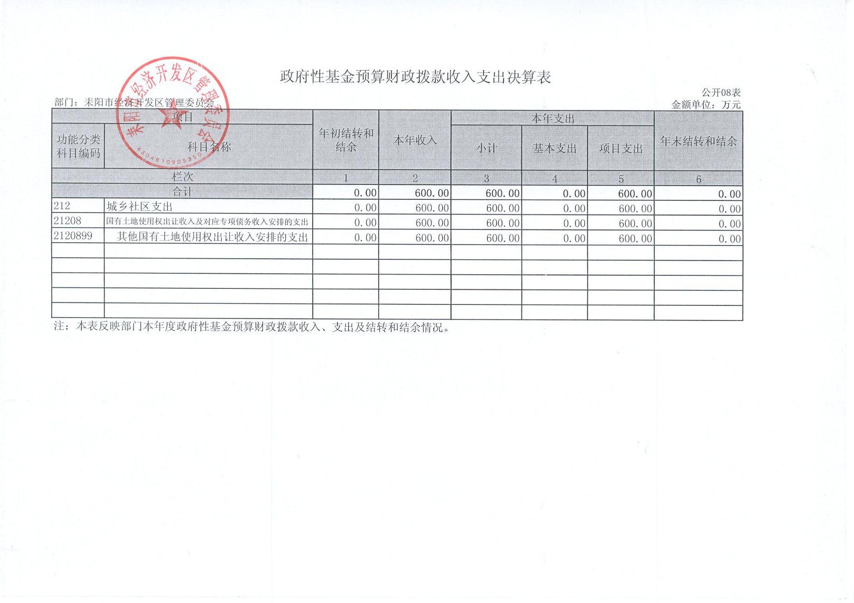 2018年经济开发区政府性基金预算财政拨款收入支出决算表(公开08表)
