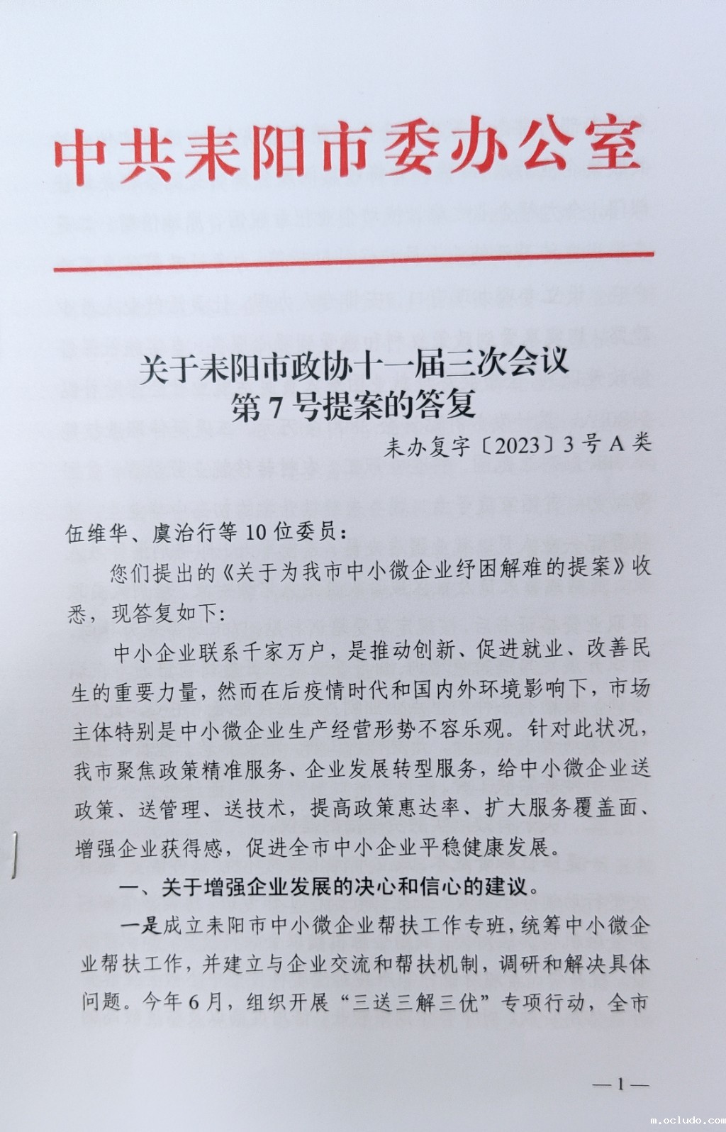 关于耒阳市政协十一届三次会议第7号提案的答复