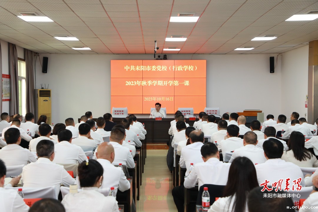 10月16日上午,耒阳市2023年科级干部培训班开班,衡阳市委副书记、耒阳市委书记赖馨正出席开班式并讲授开学“第一课”。他强调,要学深悟透习近平总书记关于高质量发展的重要论述,以只争朝夕的拼劲、锲而不舍的韧劲、敢为人先的闯劲、拼搏进取的干劲,咬定目标,狠抓落实,坚决扛起高质量发展重担,为全面建设“五个耒阳”作出新的更大贡献。
