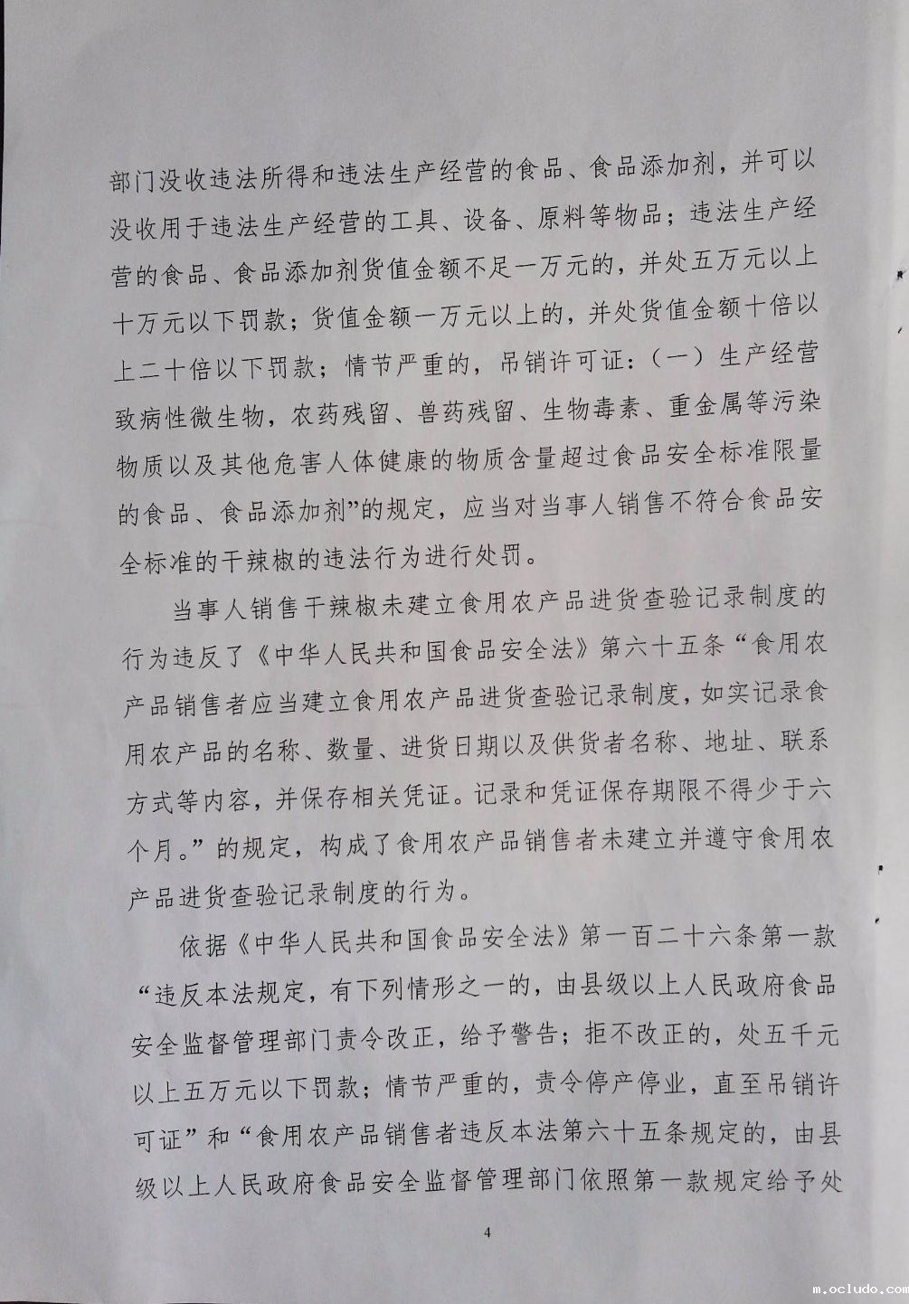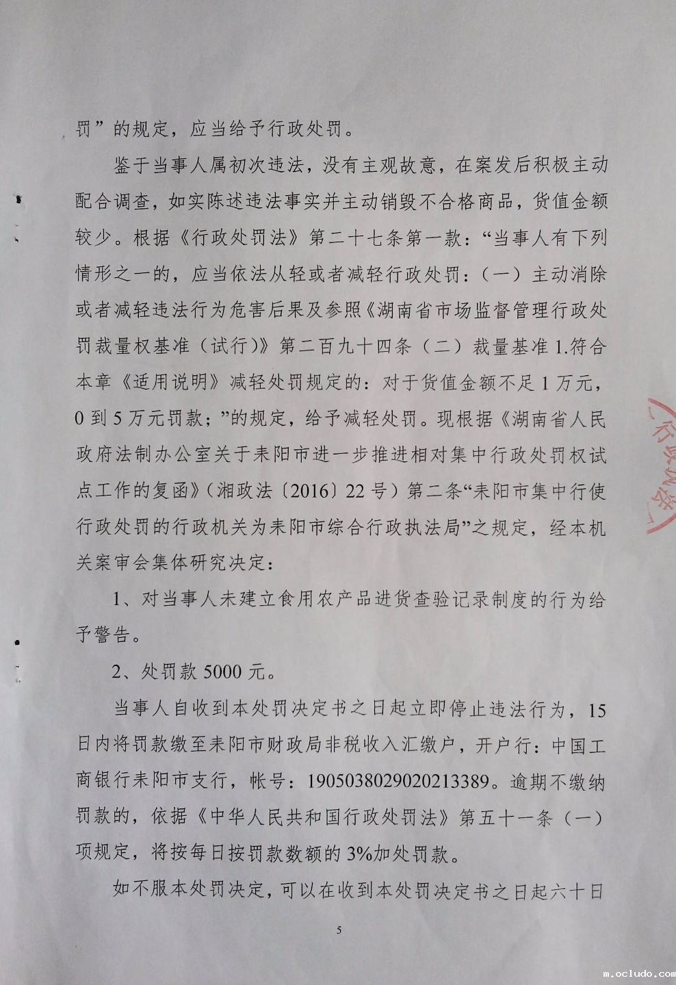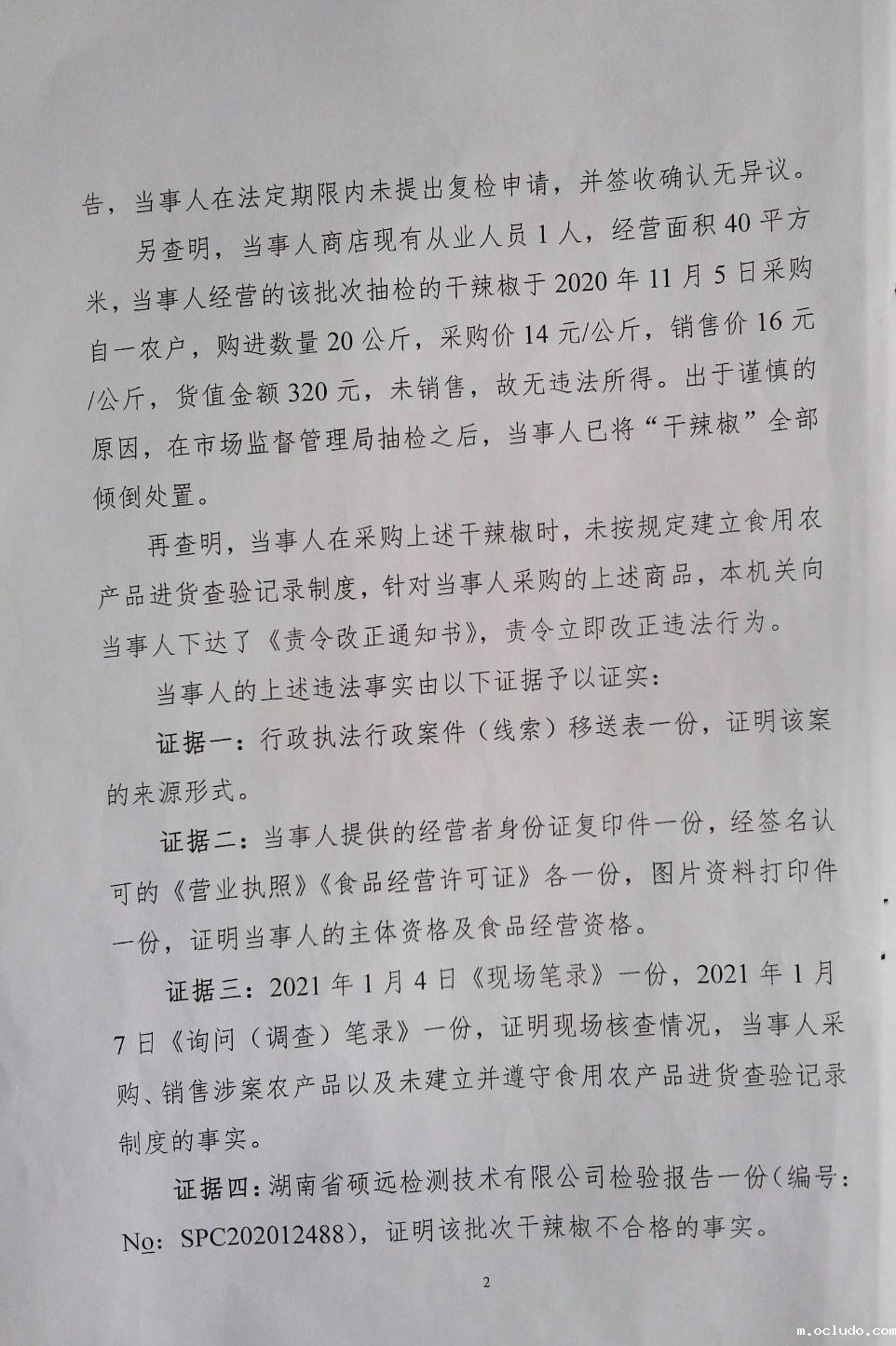 关于耒阳市天天新商店销售干辣椒检测不合格的行政处罚决定书